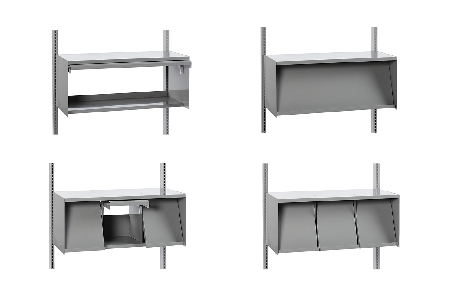 Verschillende legbordtypes en accessoires stellen u in staat om een uniek bibliotheekrek samen te stellen.