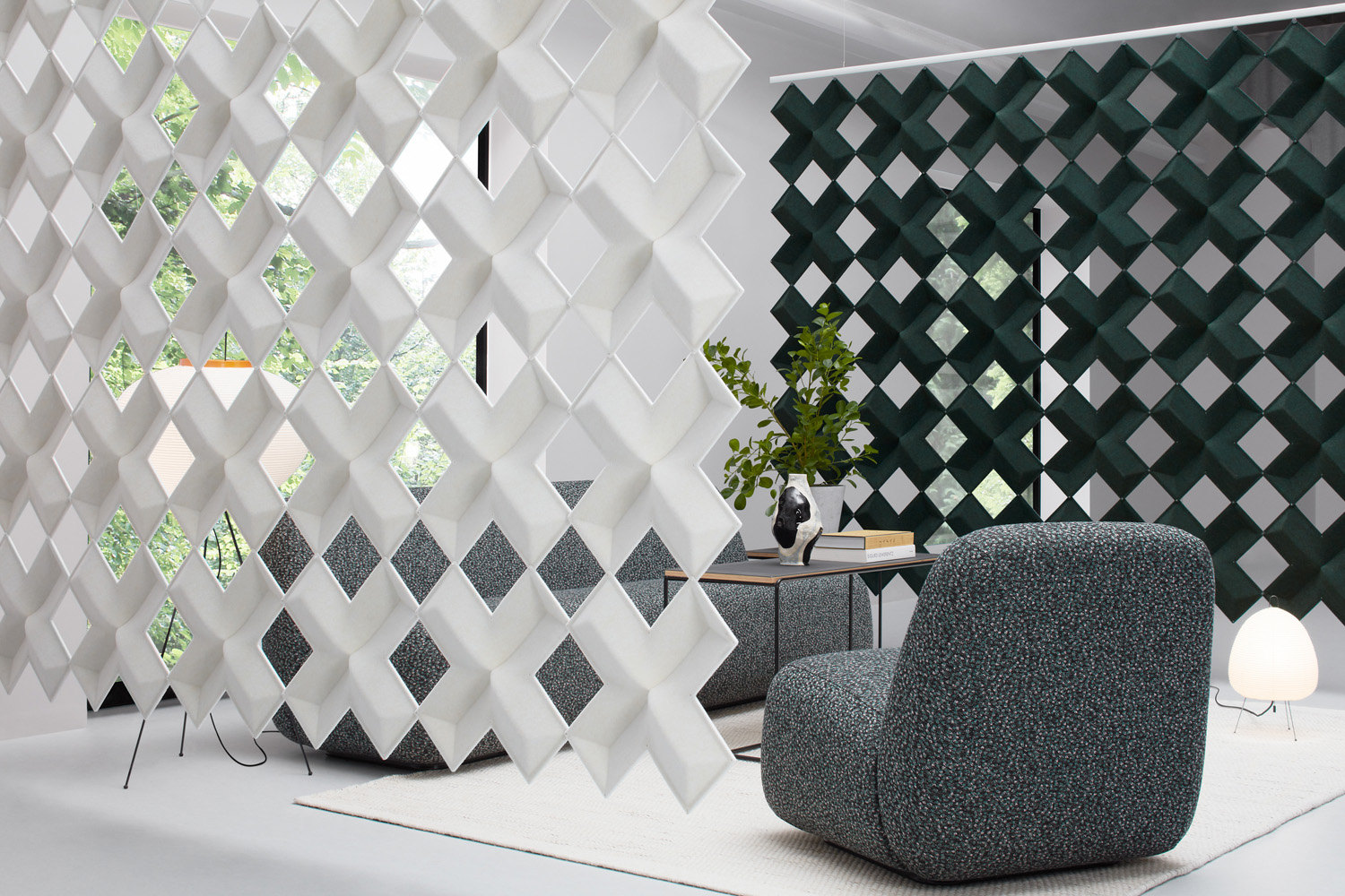 Air-X is ontworpen met de nadruk op functionaliteit en esthetiek en biedt een elegante manier om ruimtes te verdelen zonder visuele of akoestische barrières op te werpen. De modules worden met elkaar verbonden door middel van kleine kunststof connectoren. Air-X optimaliseert de ruimtelijke indeling van de bibliotheek en verbetert de omgevingservaring van bezoekers.
