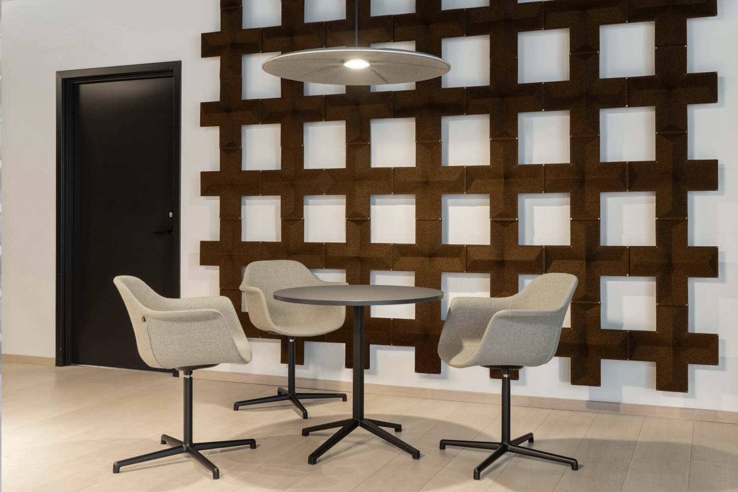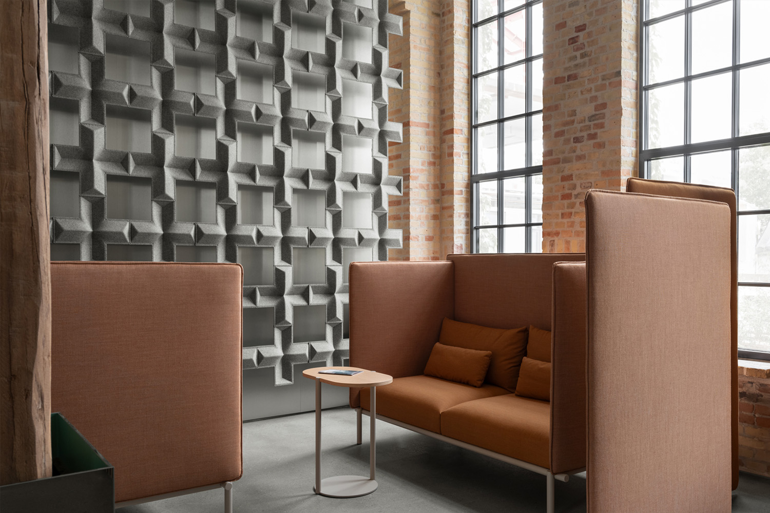 De X-vormige modules kunnen op verschillende manieren worden geconfigureerd en naadloos geïntegreerd worden in diverse omgevingen om flexibele werk- en leesruimtes te creëren.