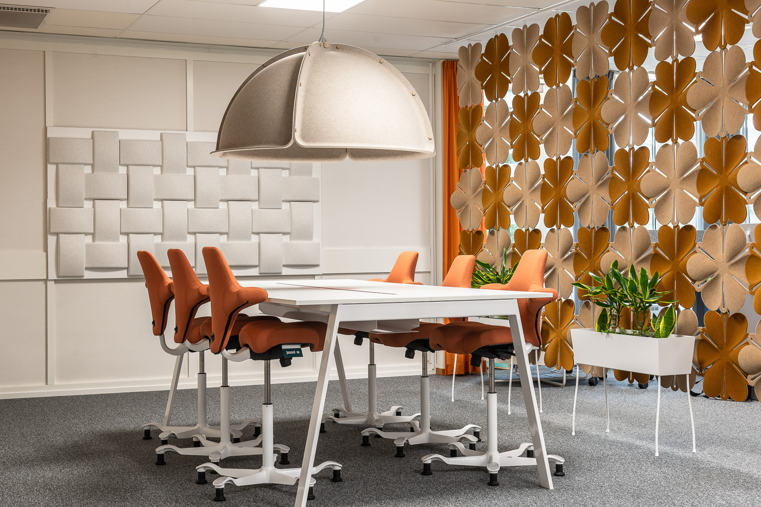 Abstracta's Airbloom, licht en luchtig, dient om dynamische ruimtes en afscheidingen in bibliotheken te creëren en tegelijkertijd de akoestiek te verbeteren. Ze zijn geïnspireerd op natuurlijke bloemachtige modules en worden in elkaar gezet met behulp van kleine kunststof verbindingsstukken.