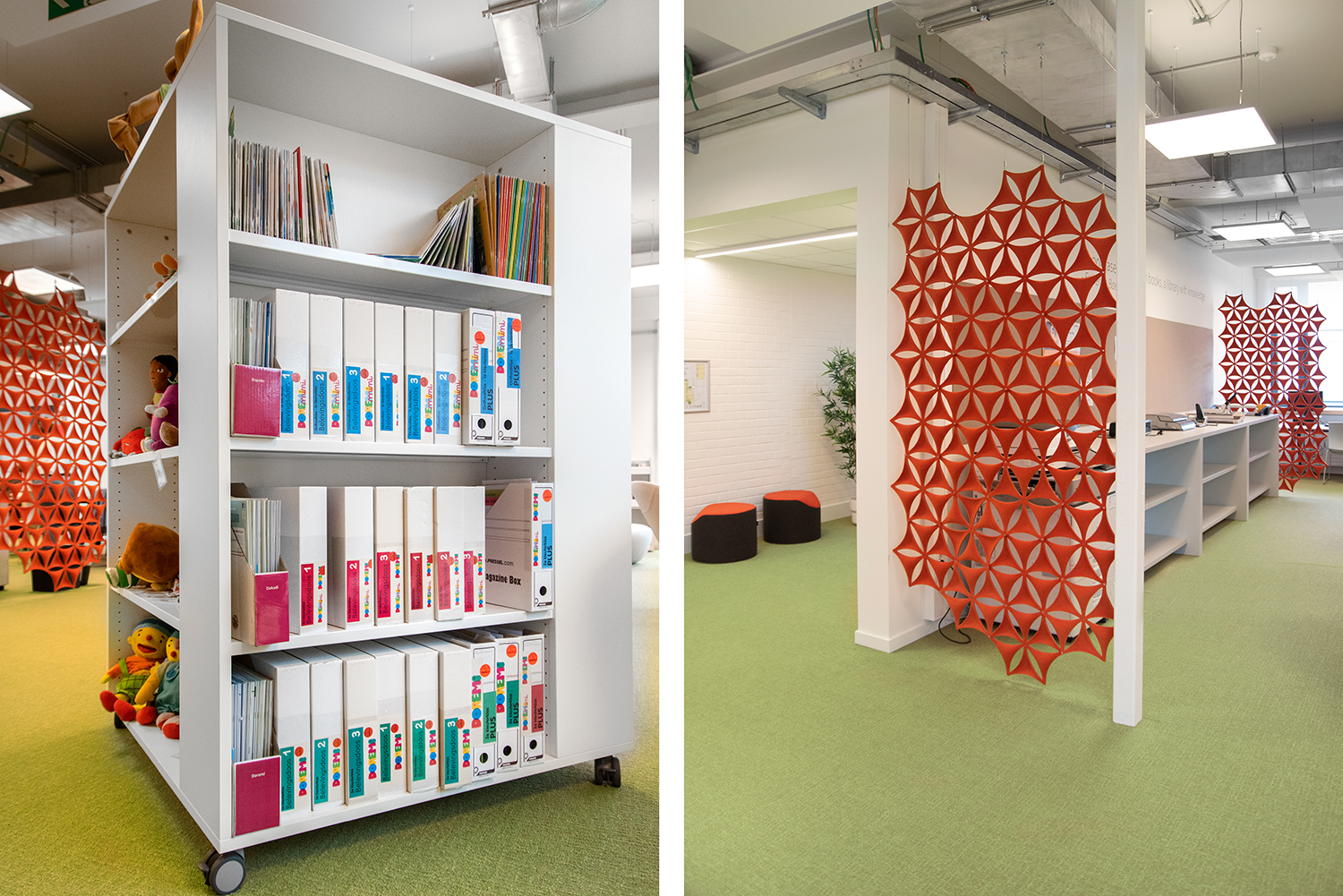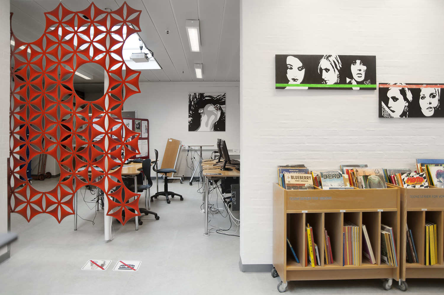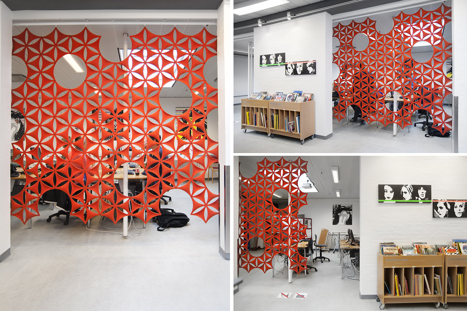 Geluidsdempend scherm vervaardigd uit vilt. Elke module is een hexagoon en beschikbaar in verschillende patronen en kleuren. Het is een eenvoudig, flexibel systeem waar je zelf geometrische patronen mee kan vormen. Airflake wordt bevestigd aan een aluminium rail voor wand of plafondmontage. Het kan ook rechtstreeks aan de muur bevestigd worden.