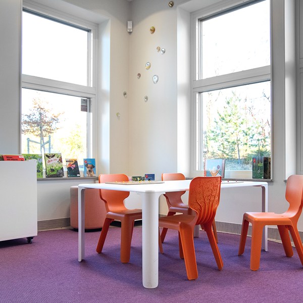 Idee en functie elegant gecombineerd. Kleuren die de vier seizoenen voorstellen : groen voor lente, helder oranje voor zomer, bruin voor de herfst en wit voor de winter.