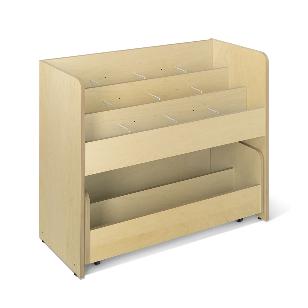 Gegroefde rubberen matten in de bovenste compartimenten zorgen ervoor dat zelfs een klein aantal boeken rechtop blijven staan.