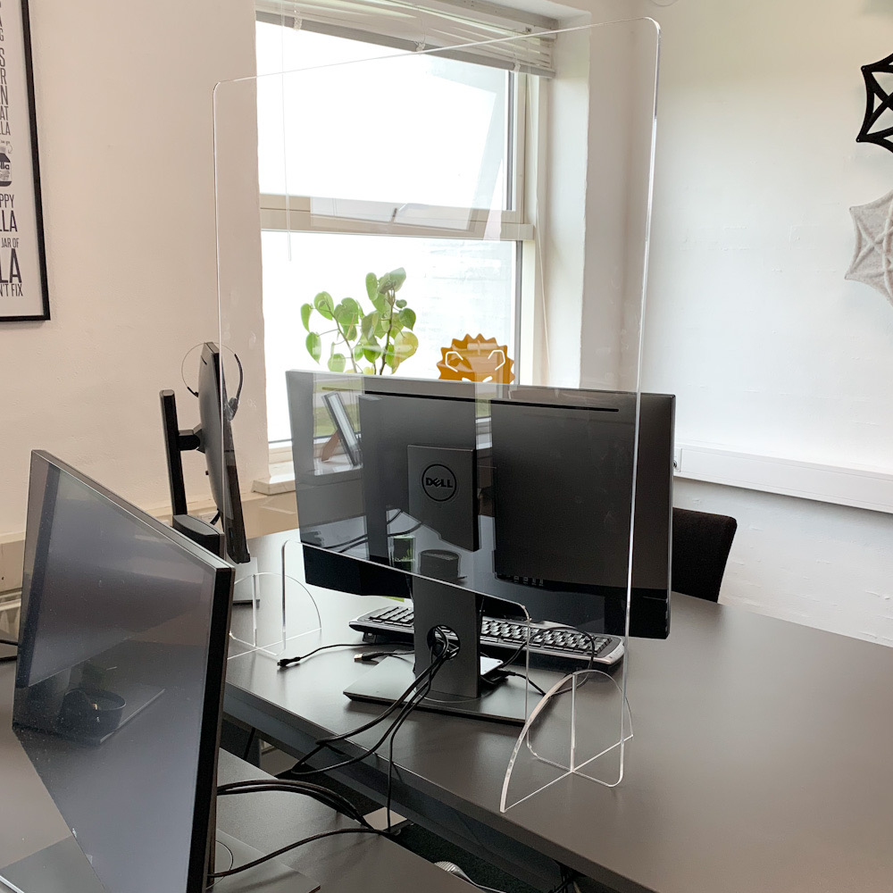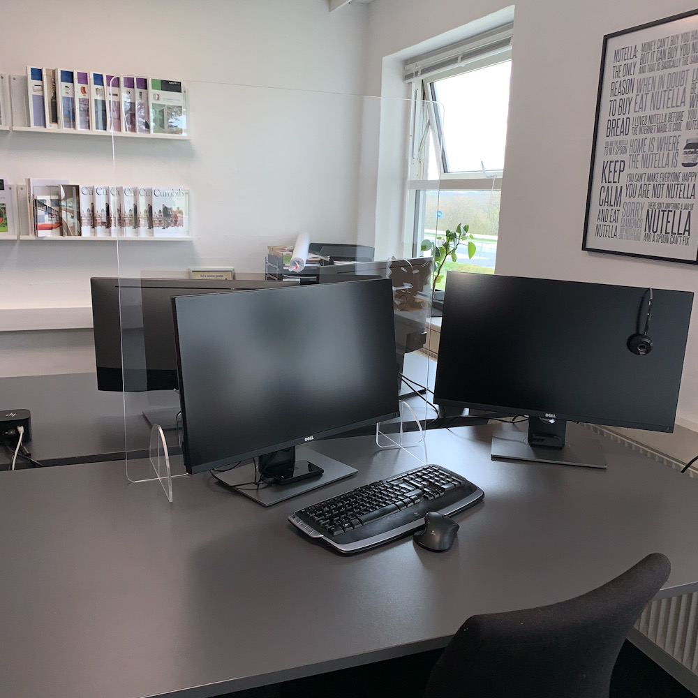 Stabiel scherm voor hygiënebescherming in een elegant ontwerp van 6 mm dik acryl om uzelf en uw bezoekers te beschermen tegen virussen tijdens een epidemie.