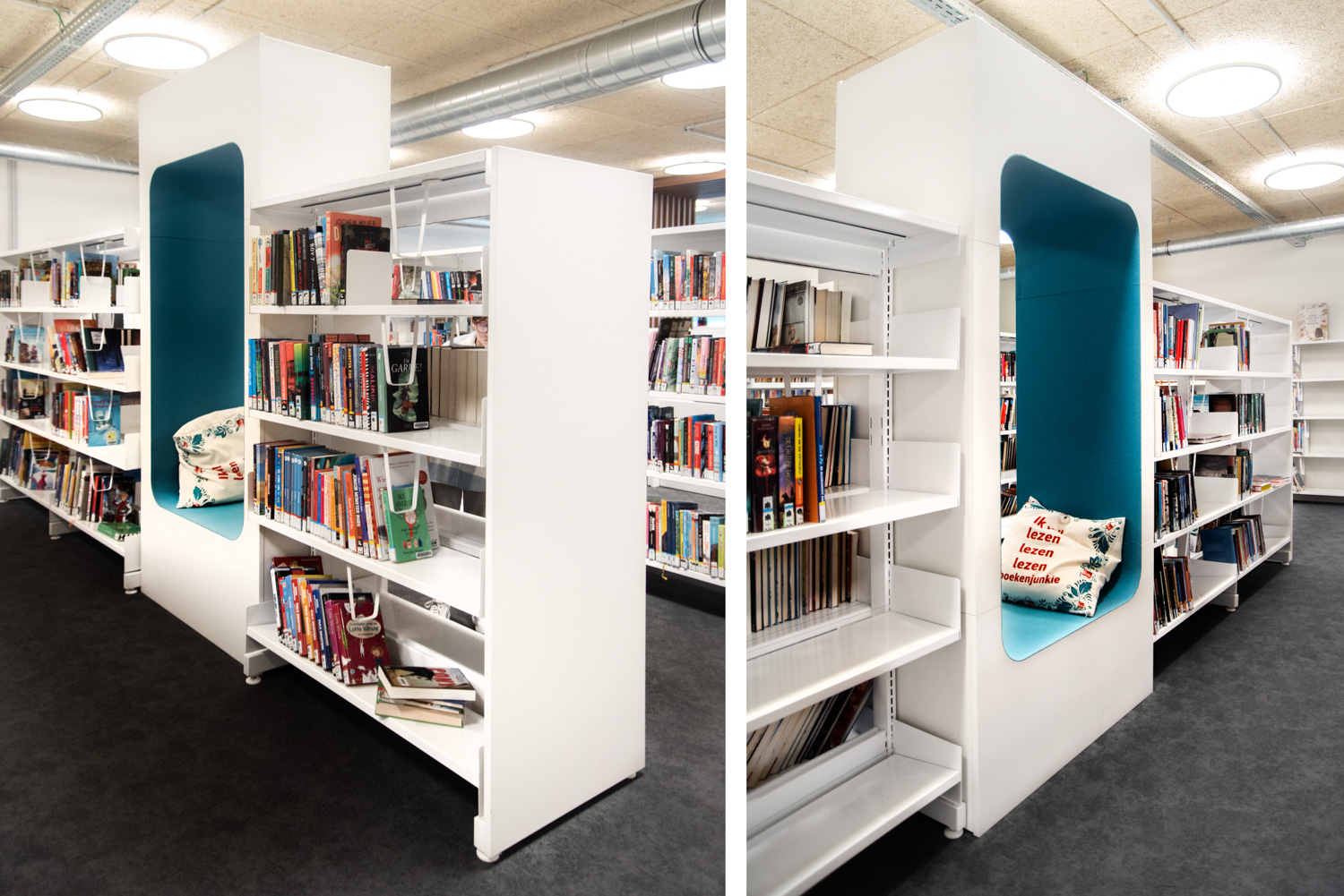De Cocoon leesplaats kan worden gepersonaliseerd zodat deze bij uw bibliotheek past met behulp van afbeeldingen en kleuren. Hij is gemaakt van hout en wordt standaard geleverd in witte melamine (RAL 9016). De binnenzijde en de binnenranden zijn bedekt met 3 mm vilt en zijn standaard verkrijgbaar in vijf verschillende heldere en opvallende kleuren. Andere kleuren zijn op aanvraag leverbaar.