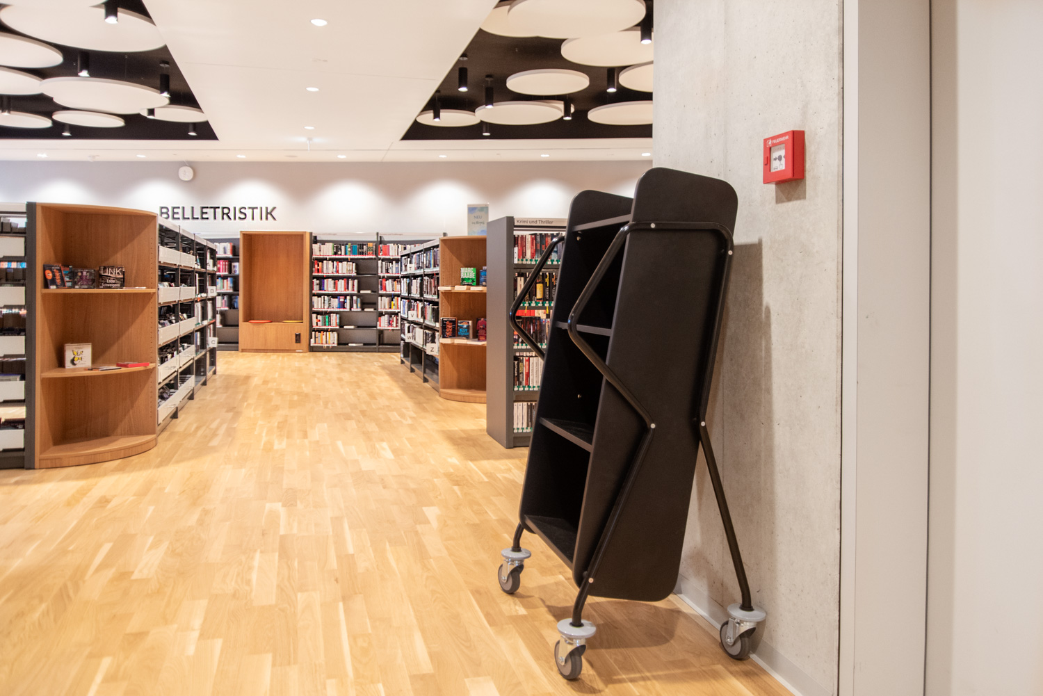 Het ontwerp van de boekenwagen zorgt voor een veilige opslag van media en biedt daarnaast een goed overzicht van de boeken die al op de kar geplaatst zijn.