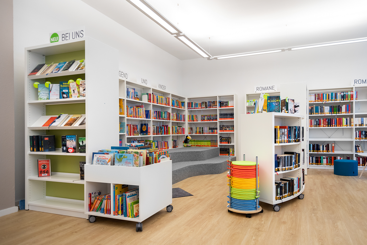 Het ontwerp van de boekenwagen zorgt voor een veilige opslag van media en biedt daarnaast een goed overzicht van de boeken die al op de kar geplaatst zijn.