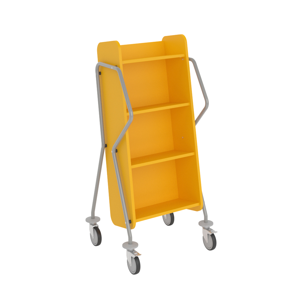 Ergonomische, gebruiksvriendelijke, enkelzijdige boekenwagen met 4 legplanken. Er is een royale ruimte voorzien tussen de planken, ideaal voor grotere boeken.