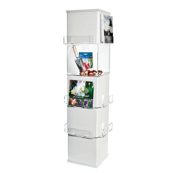 Veelzijdig, uitbouwbaar systeem voor frontale display van boeken, tijdschriften en voor expositiedoeleinden.