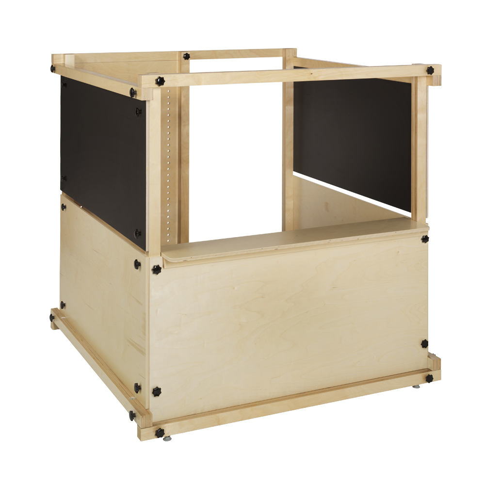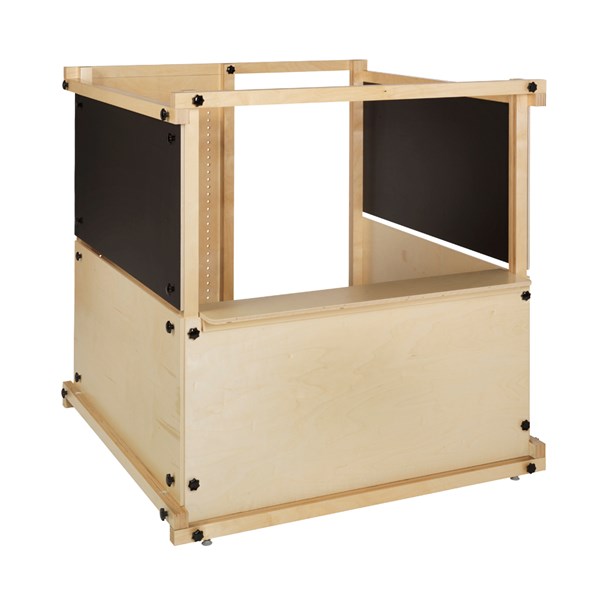 Cubik bestaat uit een kader en enkele wandelementen vervaardigd uit multiplex of van zwarte laminaat met schrijf- /magneetfunctie.