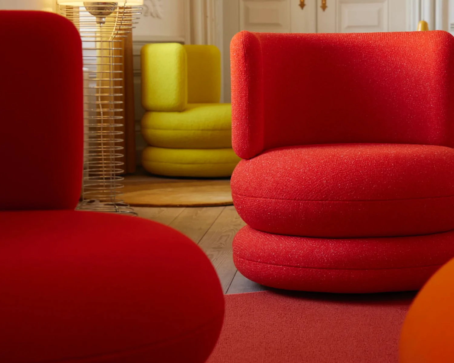 De Easy Collection, ontworpen door Verner Panton, bestaat uit zachte en comfortabele meubels die passen bij de rest van het interieurontwerp van de bibliotheek. In de serie zijn de visueel karakteristieke Easy Sofa, Chair en Pouf die comfort combineren met esthetiek in een tijdloos en imposant design.