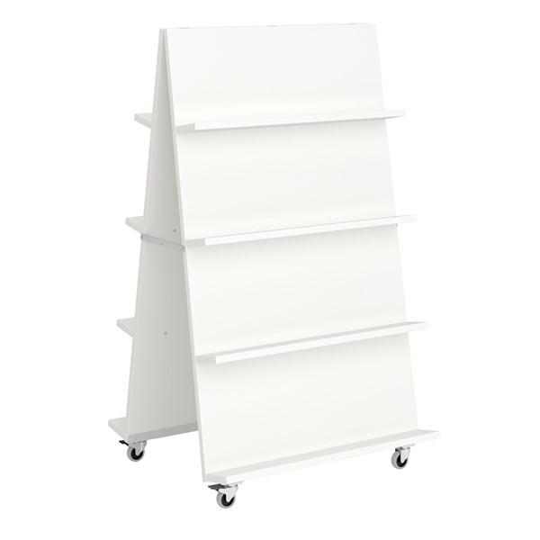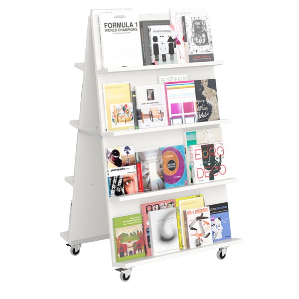 Verschillende mediaformaten kunnen op deze display gepresenteerd worden dankzij de verstelbare planken. Gebruik 3 of 4 planken aan elke zijde. Ideaal in open ruimtes of entree zones waar kleinere displays vaak in verdwijnen.