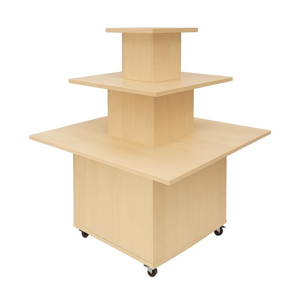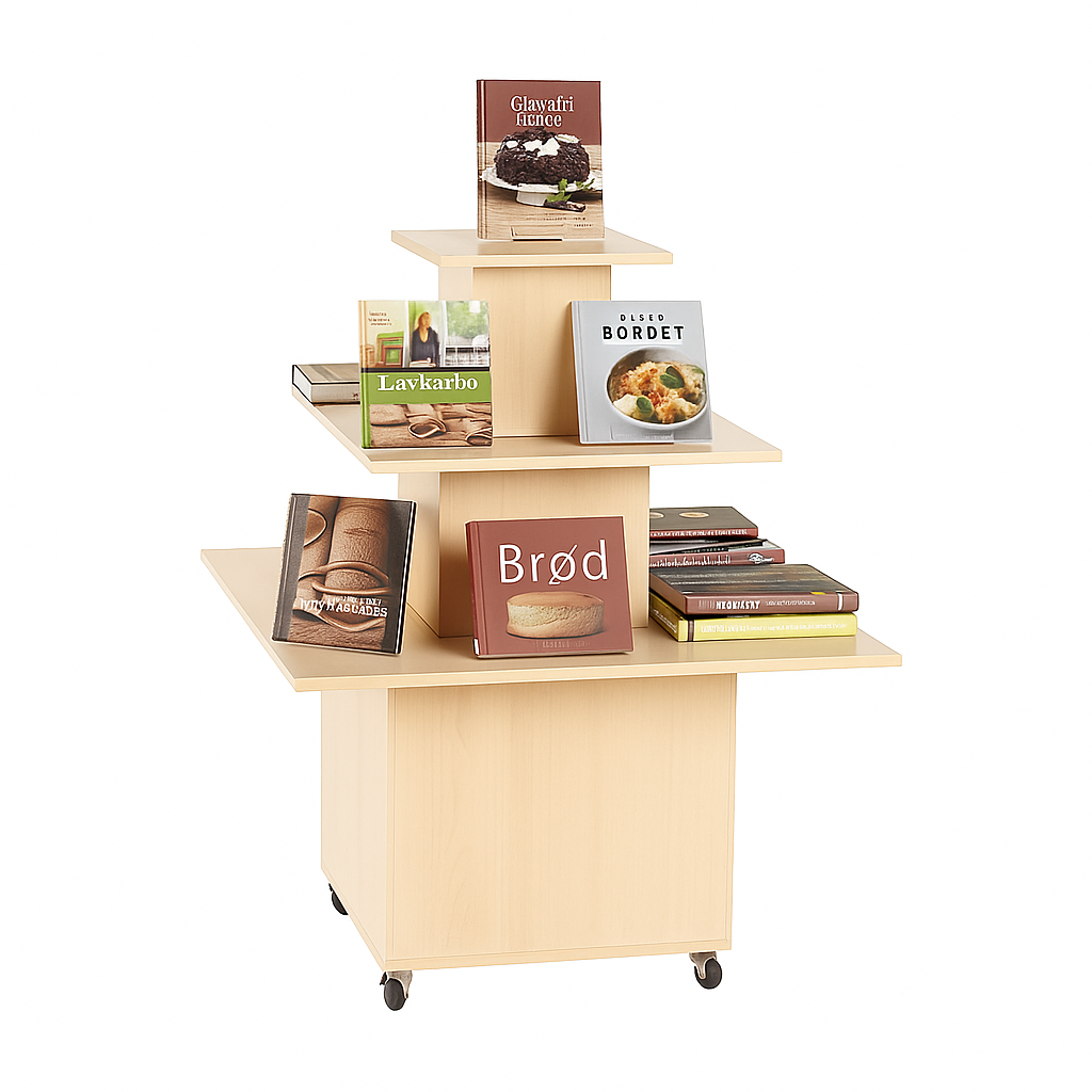 Functioneel, veelzijdig podium voor de weergave van boeken en/of andere media. Ideaal als blikvanger bij de ingang of andere aandachtsgebieden in uw bibliotheek. Geleverd met wielen en stelvoetjes. Heeft u liever een andere kleur of houtsoort? Stuur ons een mailtje en we komen hier samen uit!