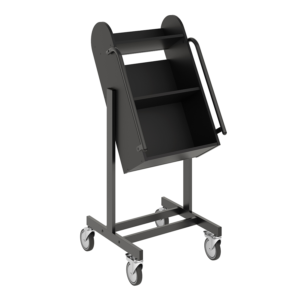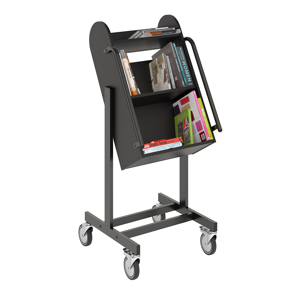 De vorm van de boekenwagen zorgt voor een veilige opslag van media en biedt daarnaast een goed overzicht van de boeken die erop liggen. Verhoogde opslag vermindert slijtage aan de rug en gewrichten.