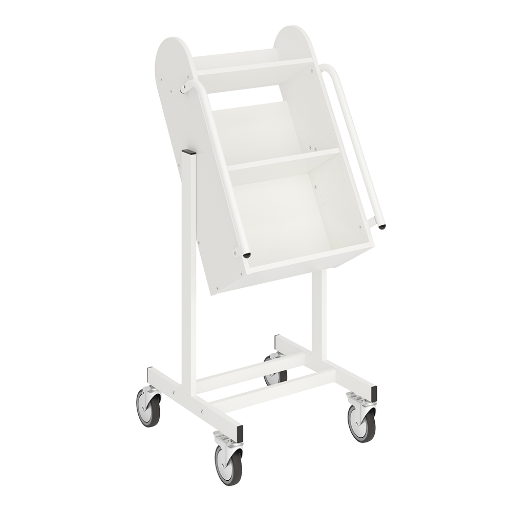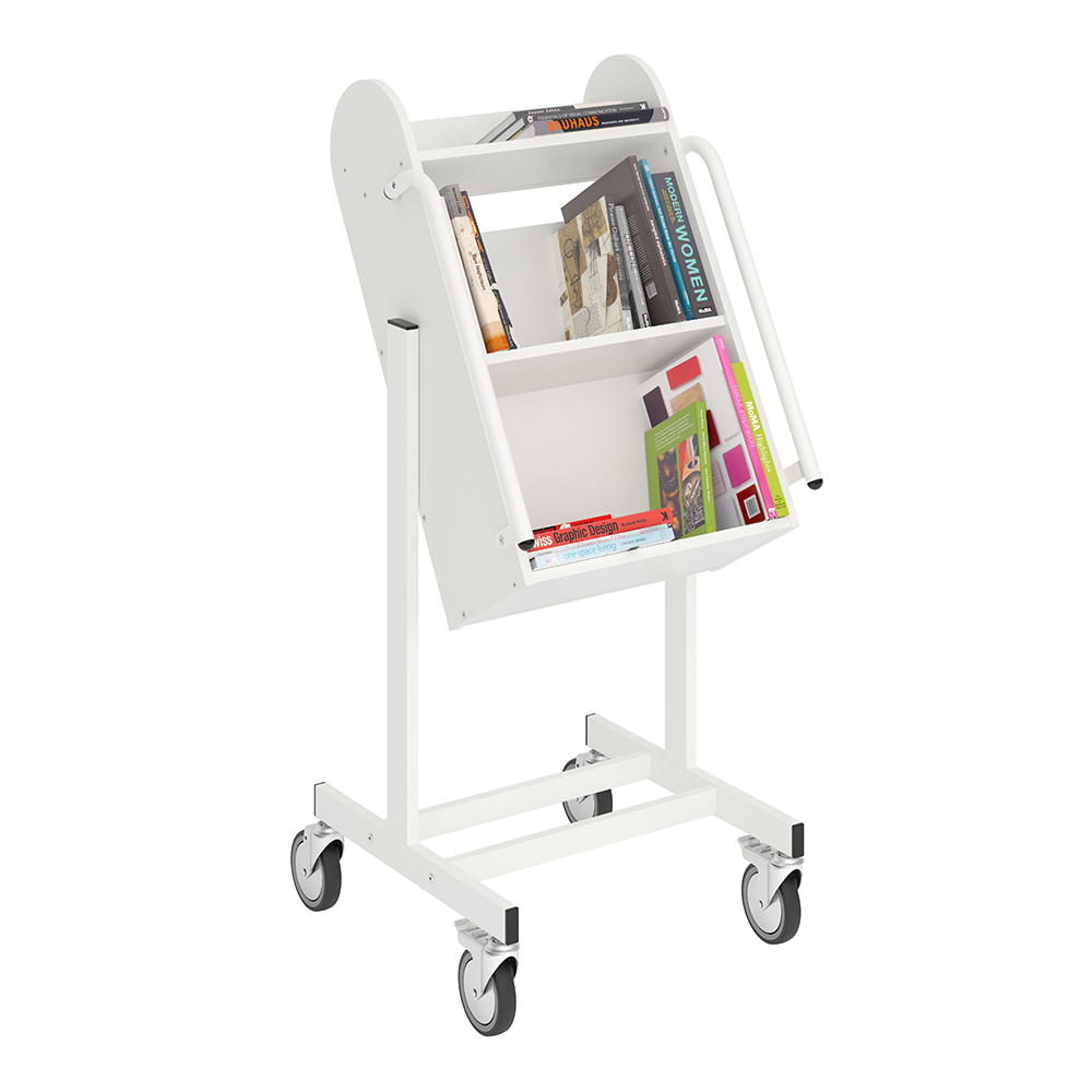 De vorm van de boekenwagen zorgt voor een veilige opslag van media en biedt daarnaast een goed overzicht van de boeken die erop liggen. Verhoogde opslag vermindert slijtage aan de rug en gewrichten.