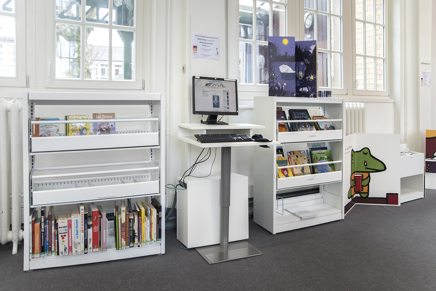 In hoogte verstelbaar zoekstation met slank modern design en grote stabiliteit met zijn stevige bodemplaat.