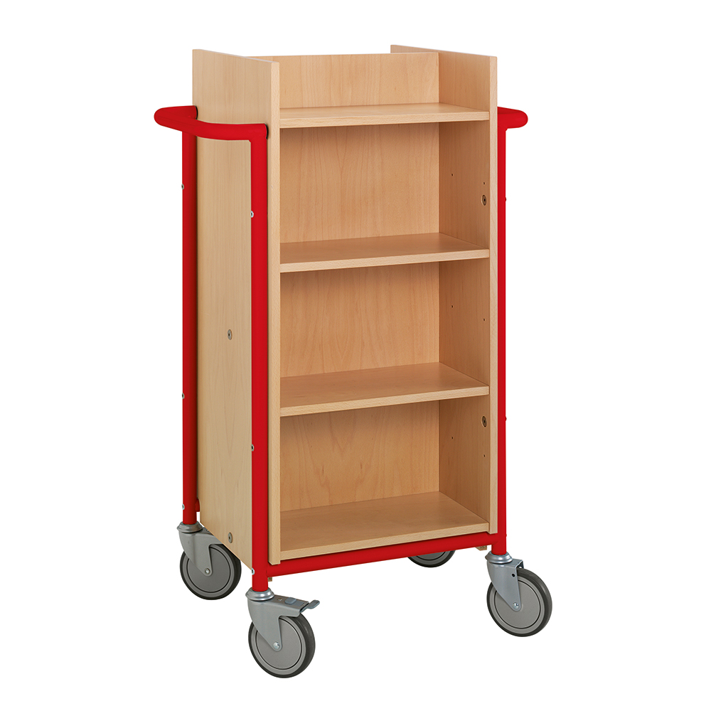 Deze boekenwagen kan ook gebruikt worden als klein, verrijdbaar boekenrekje.