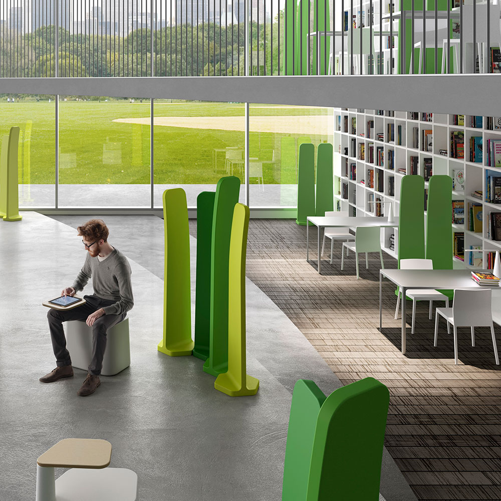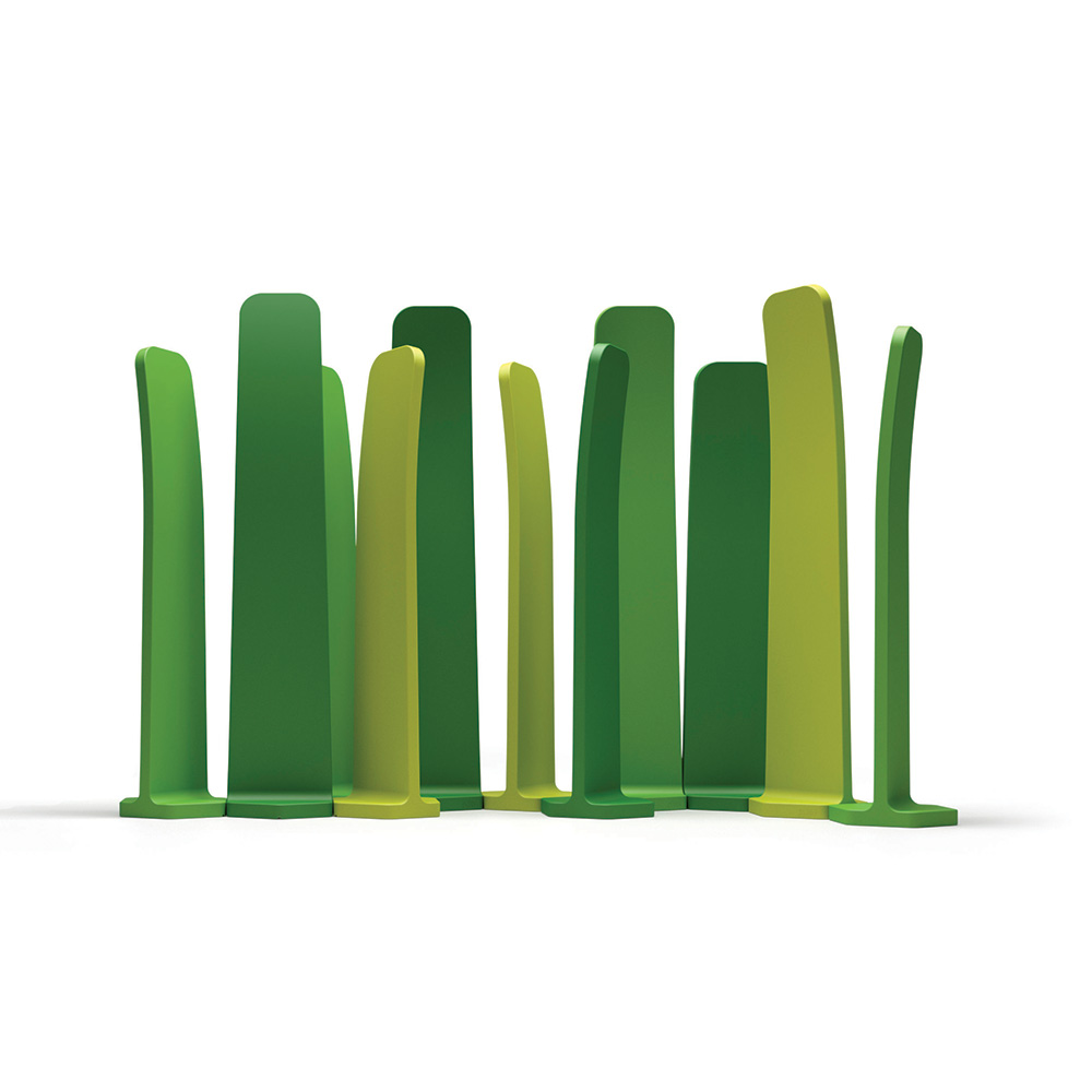 Gradient is een systeem van scheidingswanden in 2 verschillende hoogten met een zeshoekige basis en in mooie tinten groen of effen wit.