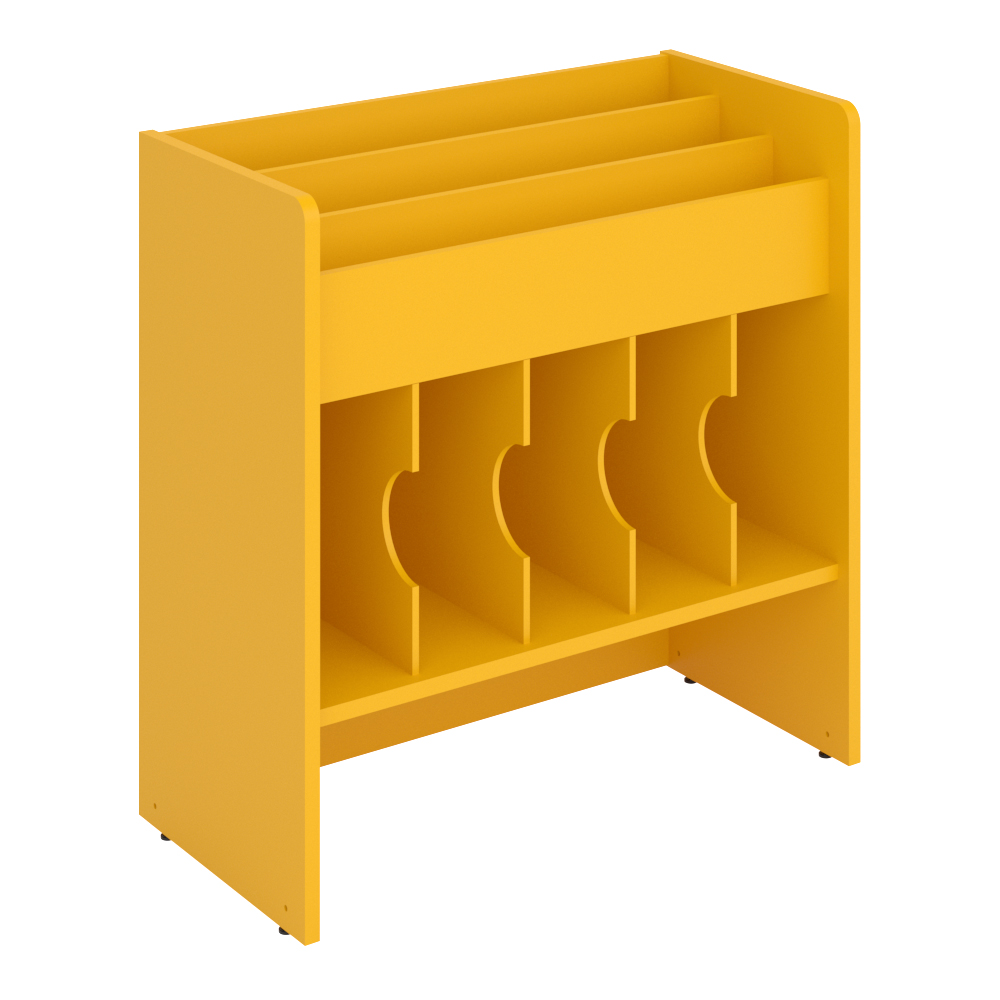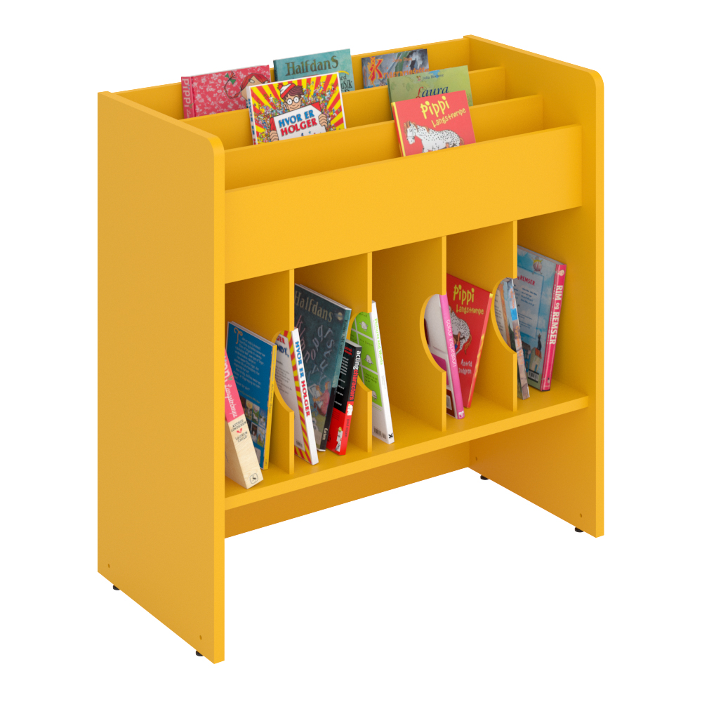 Populaire boekenbak met 3 niveaus voor frontale presentatie bovenaan en 5 opslagruimtes onderaan.