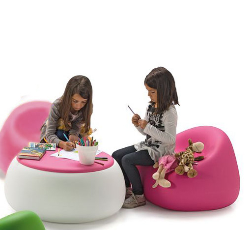 De Gumball-fauteuil heeft de vorm van een zachte, reeds “ingedeukte” zitzak en biedt de perfecte plek om te zitten met vrienden of met een goed boek.