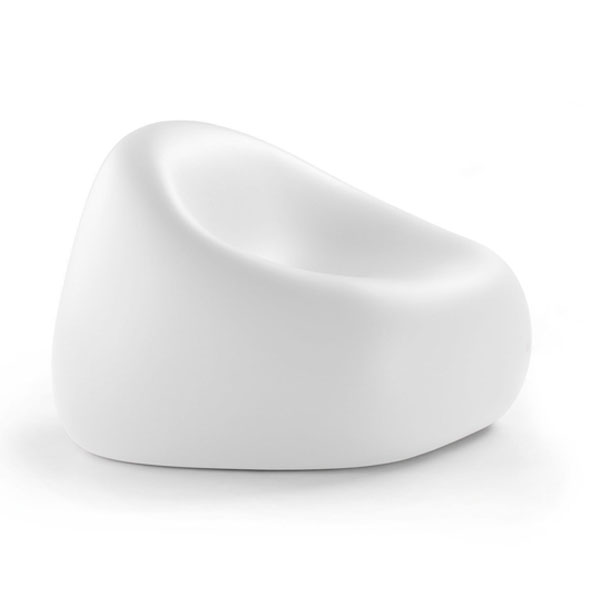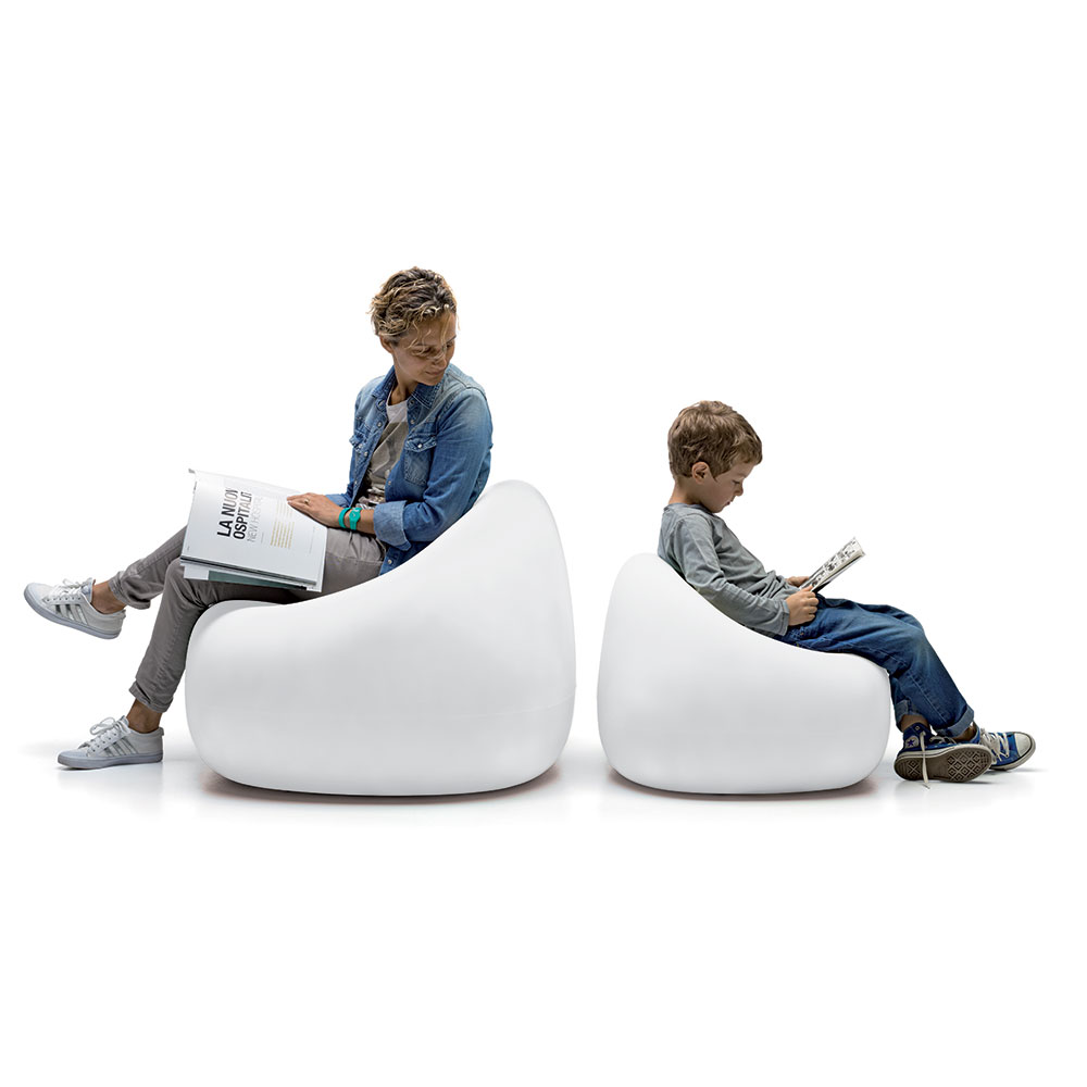 De Gumball-fauteuil heeft de vorm van een zachte, reeds “ingedeukte” zitzak en biedt de perfecte plek om te zitten met vrienden of met een goed boek.