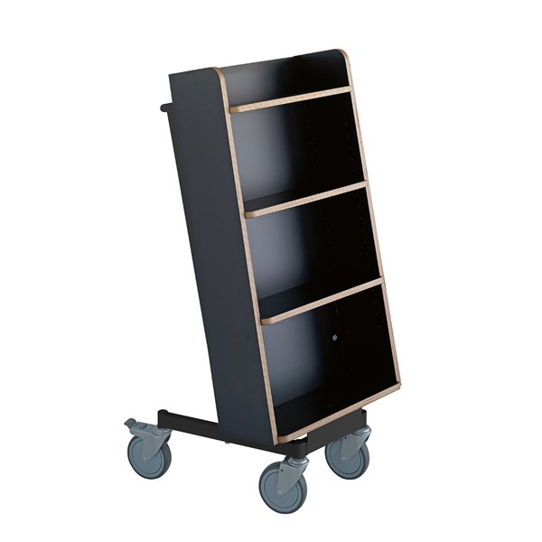 Het onwerp van de boekenwagen zorgt voor een veilige opslag van media en daarnaast biedt hij een goed overzicht van de boeken.