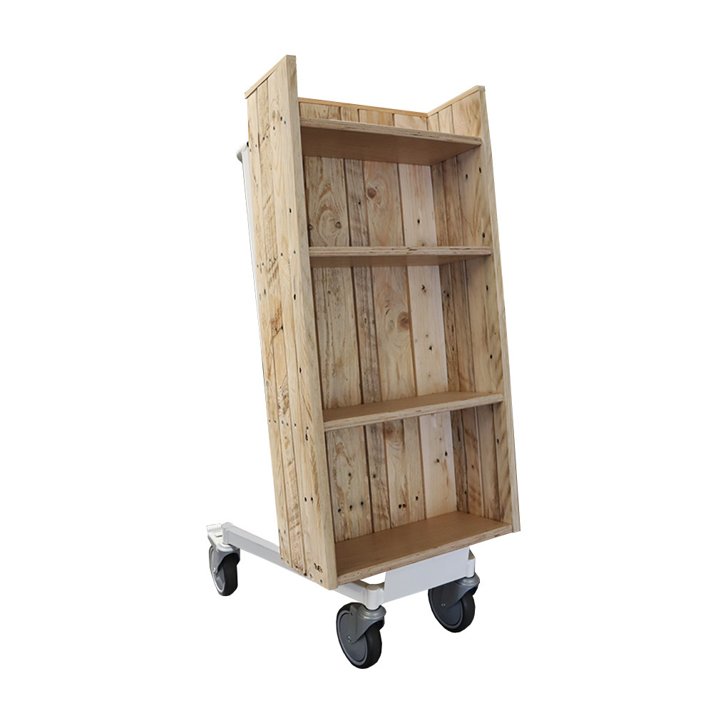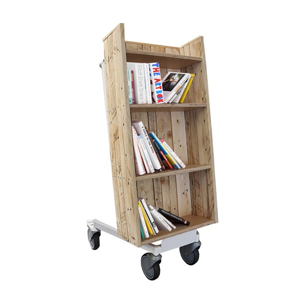 Onze best verkochte boekenwagen is nu verkrijgbaar in een speciale uitvoering gemaakt van gerecycleerd en overtollig hout uit het productieproces. De natuurlijke structuur in het hout geeft elke trolley een uniek karakter en voegt warmte en een hedendaags tintje toe aan klassieke bibliotheekinterieurs.