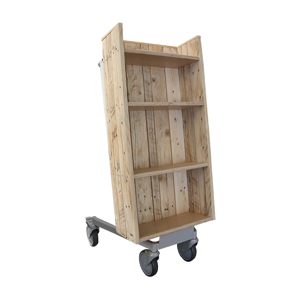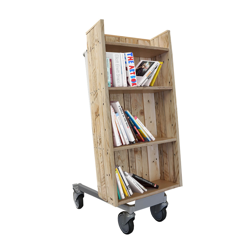 Onze best verkochte boekenwagen is nu verkrijgbaar in een speciale uitvoering gemaakt van gerecycleerd en overtollig hout uit het productieproces. De natuurlijke structuur in het hout geeft elke trolley een uniek karakter en voegt warmte en een hedendaags tintje toe aan klassieke bibliotheekinterieurs.