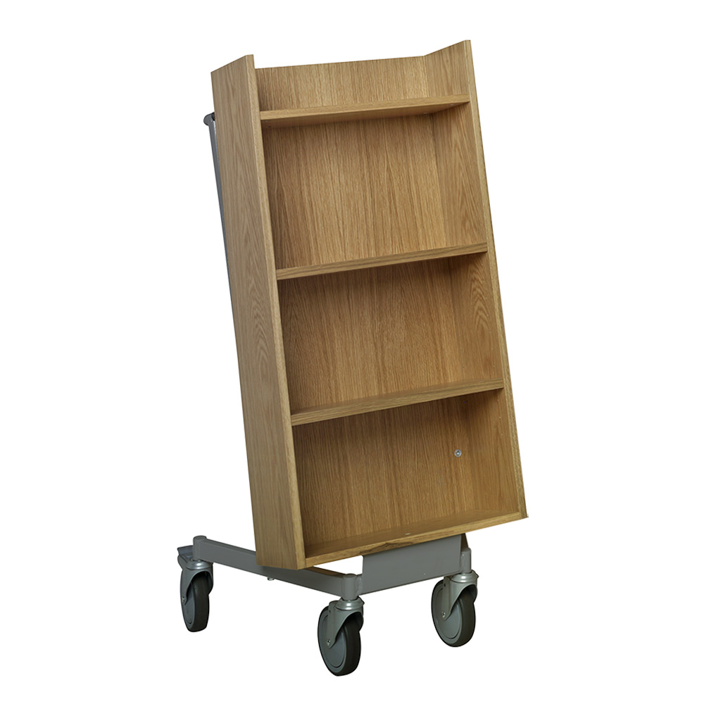 Gebruiksvriendelijke, enkelzijdige boekenwagen met 4 legplanken. De 2 middelste planken zijn verstelbaar.