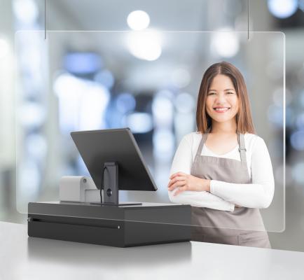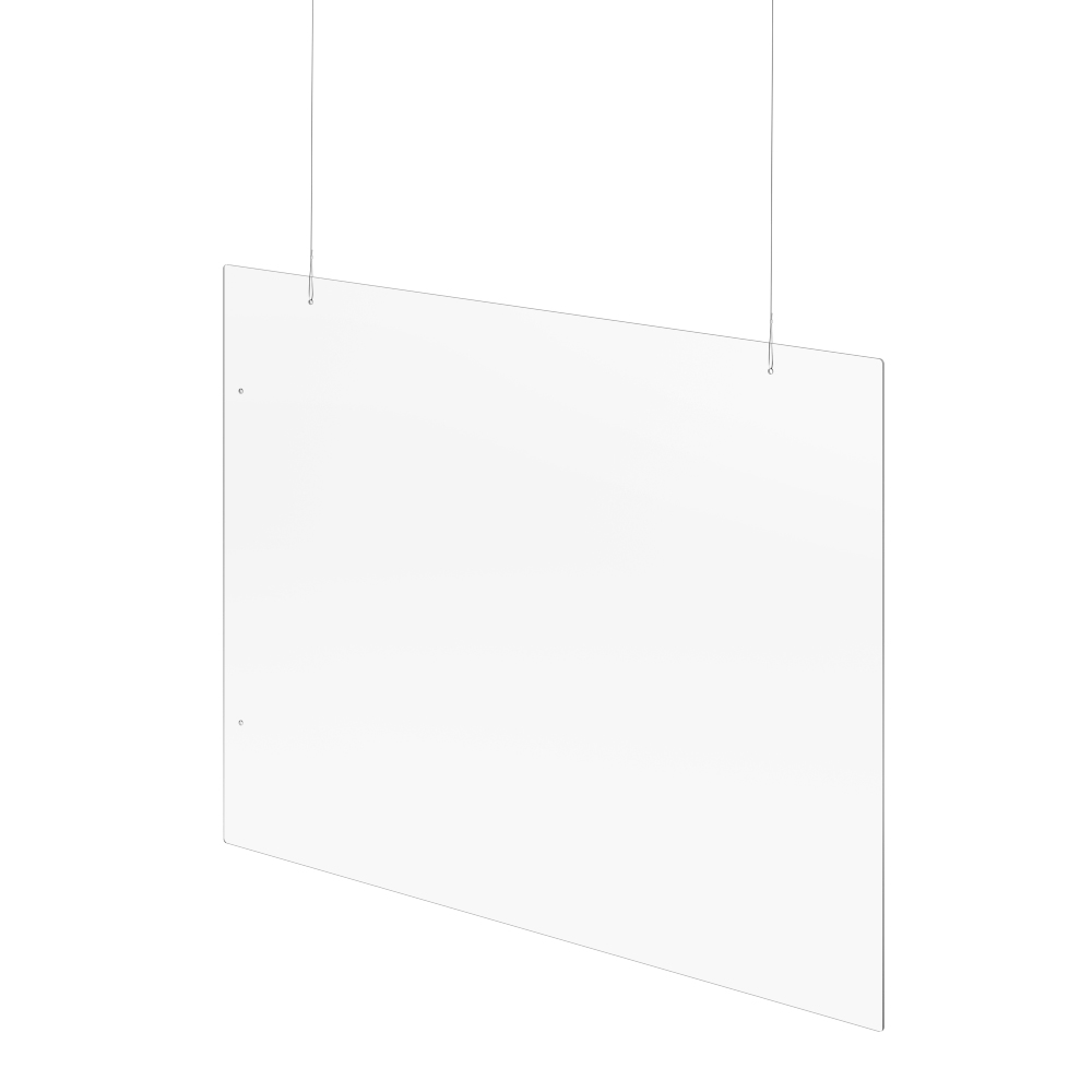 Hangend scherm voor hygiënebescherming in een elegant ontwerp van 3mm dik acryl met 2 x 2,5m ophangdraad.