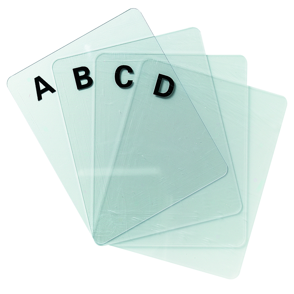 Handige, transparante tabkaarten met tekst in acryl voor AV-media.