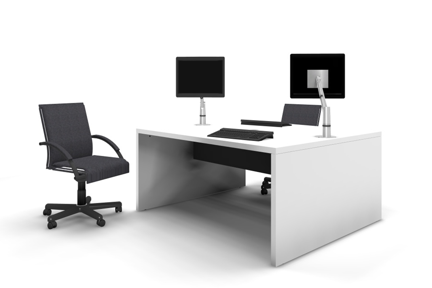 Duo: een rechthoekige tafel met frontpaneel dat bijna in het midden is geplaatst, waardoor de tafel aan beide kanten kan worden gebruikt.