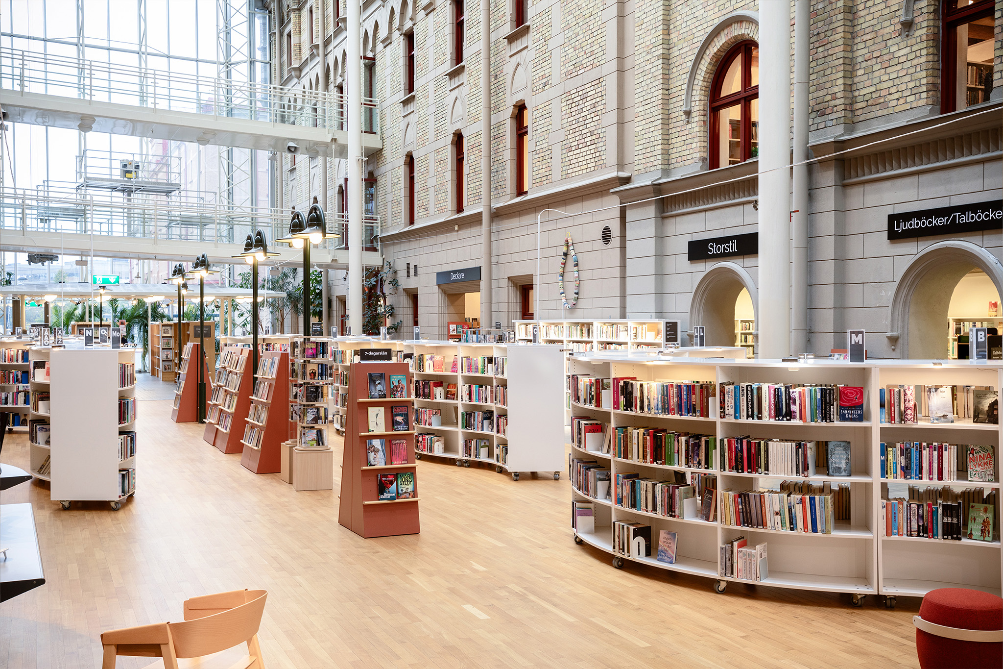 In de hoofdbibliotheek vormen de golvende rondingen van de gecanneleerde stoelen zich elegant rond de structurele pilaren en vormen zo uitnodigende en comfortabele leeshoekjes. Deze modulaire elementen, bekleed met duurzame stoffen, moedigen zowel stille overdenking als sociale interactie aan en vervullen de behoeften van verschillende gebruikers.