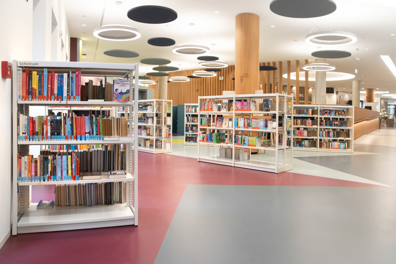 Het kindergedeelte is ontworpen met het oog op flexibiliteit, zodat er verschillende activiteiten kunnen plaatsvinden, zoals verhaaltjessessies, huiswerkclubs, auteursbezoeken en nog veel meer. In de hele ruimte zijn open boekenrekken voorzien voor een betere zichtbaarheid en het is volledig toegankelijk voor zowel kinderen als volwassenen, wat inclusiviteit en gemakkelijk bladeren bevordert.