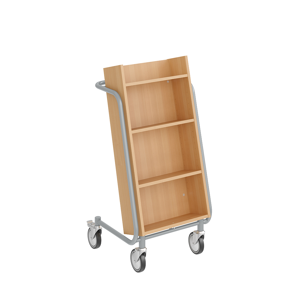 Gebruiksvriendelijke, enkelzijdige boekenwagen met 4 legplanken. De 2 middelste planken zijn verstelbaar.