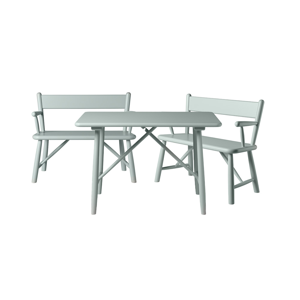 Het meubilair is gemaakt van gelakt beukenhout en vereist minimaal onderhoud. Het kan eenvoudig worden schoongemaakt door simpelweg af te nemen met een vochtige doek.