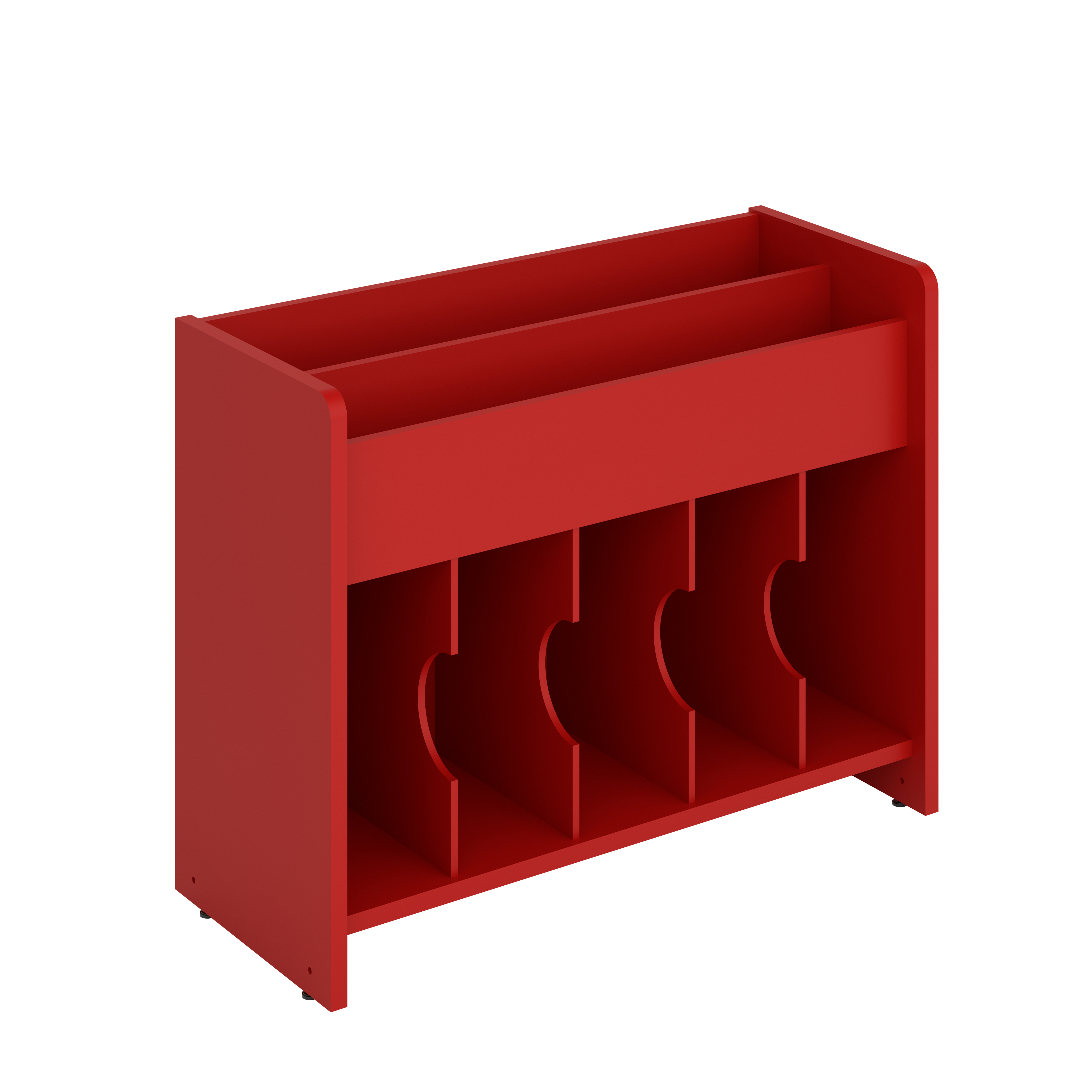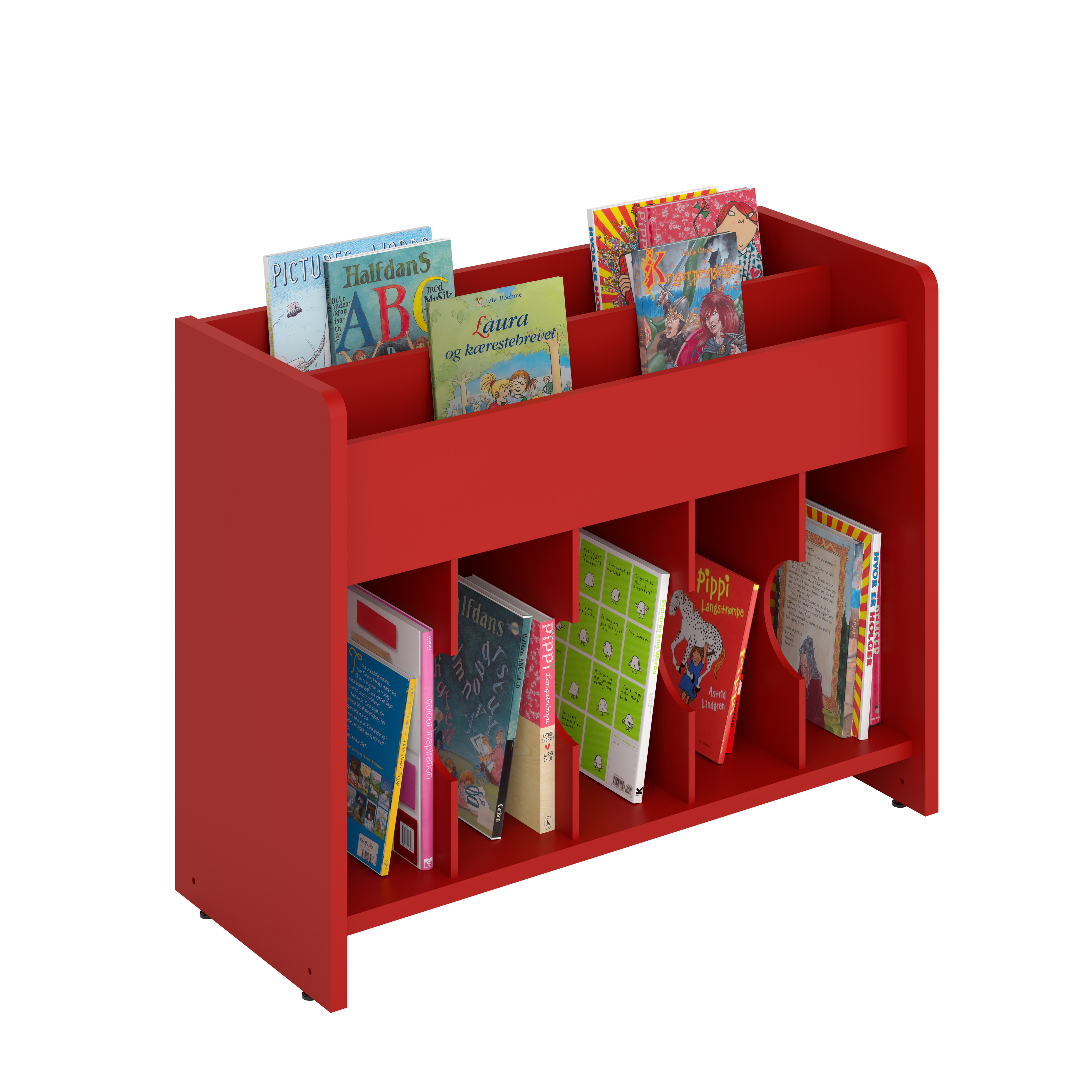 Deze populaire boekenbak is voorzien van 2 niveaus voor frontale presentatie bovenaan en 5 vakken onderaan voor opslag.