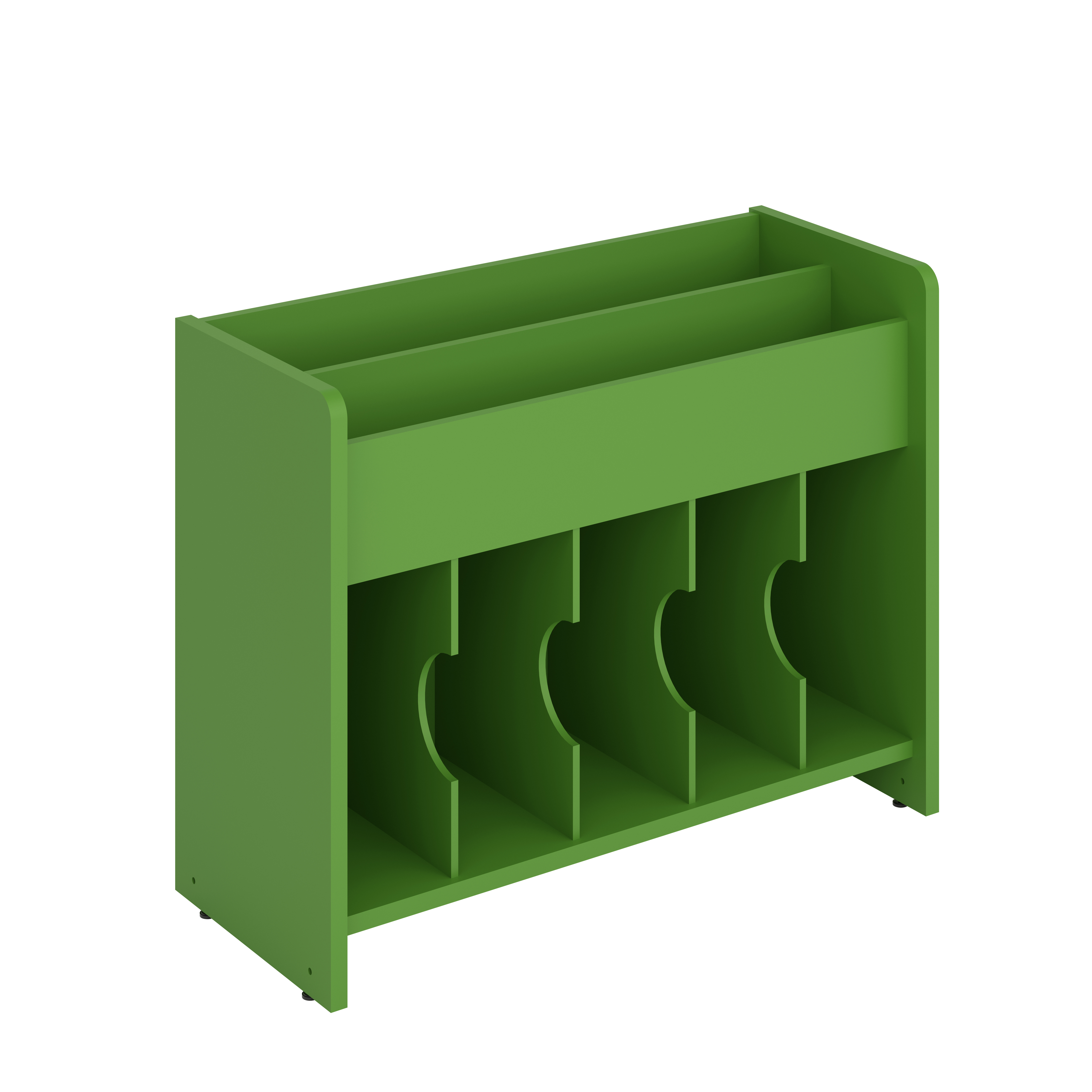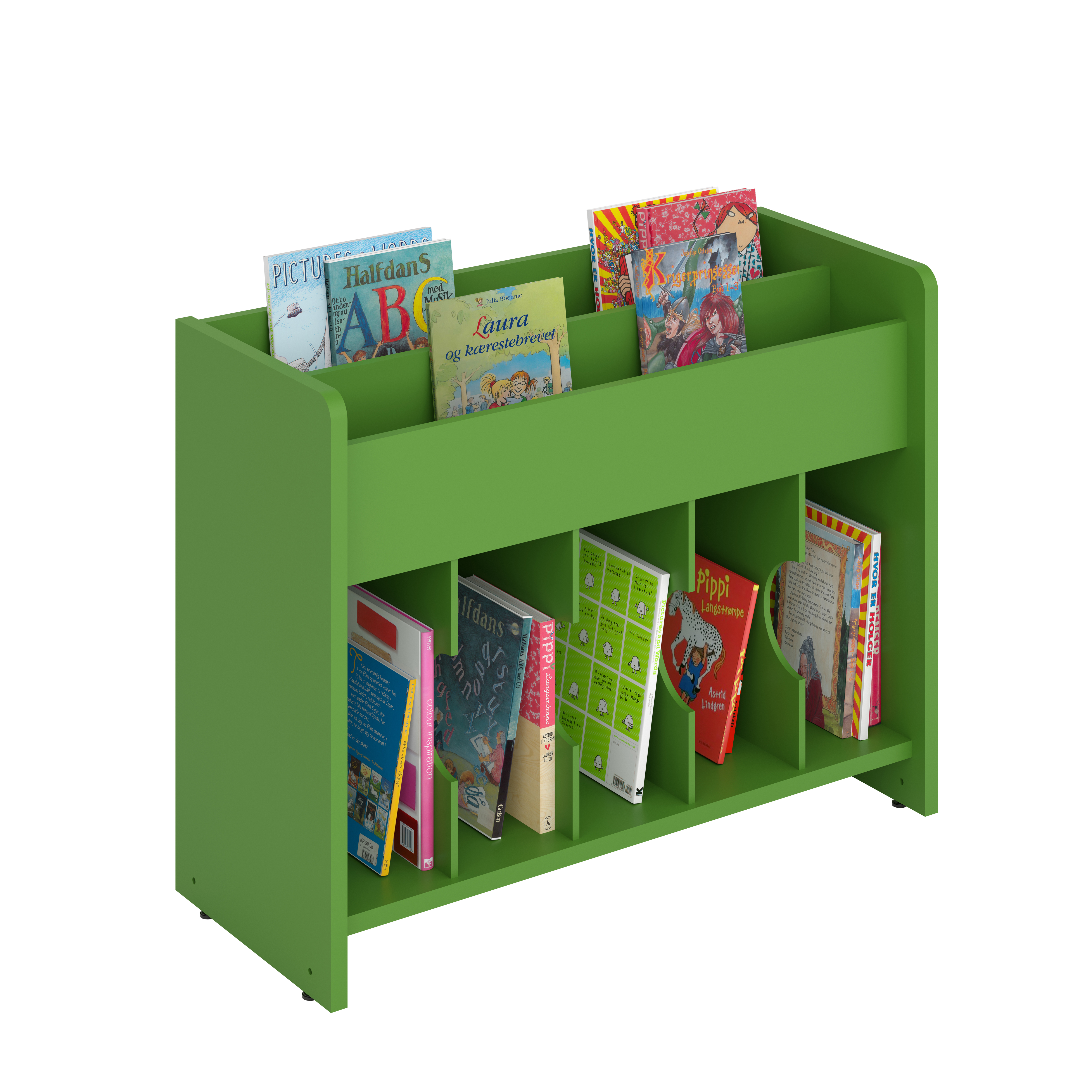 Deze populaire boekenbak is voorzien van 2 niveaus voor frontale presentatie bovenaan en 5 vakken onderaan voor opslag.