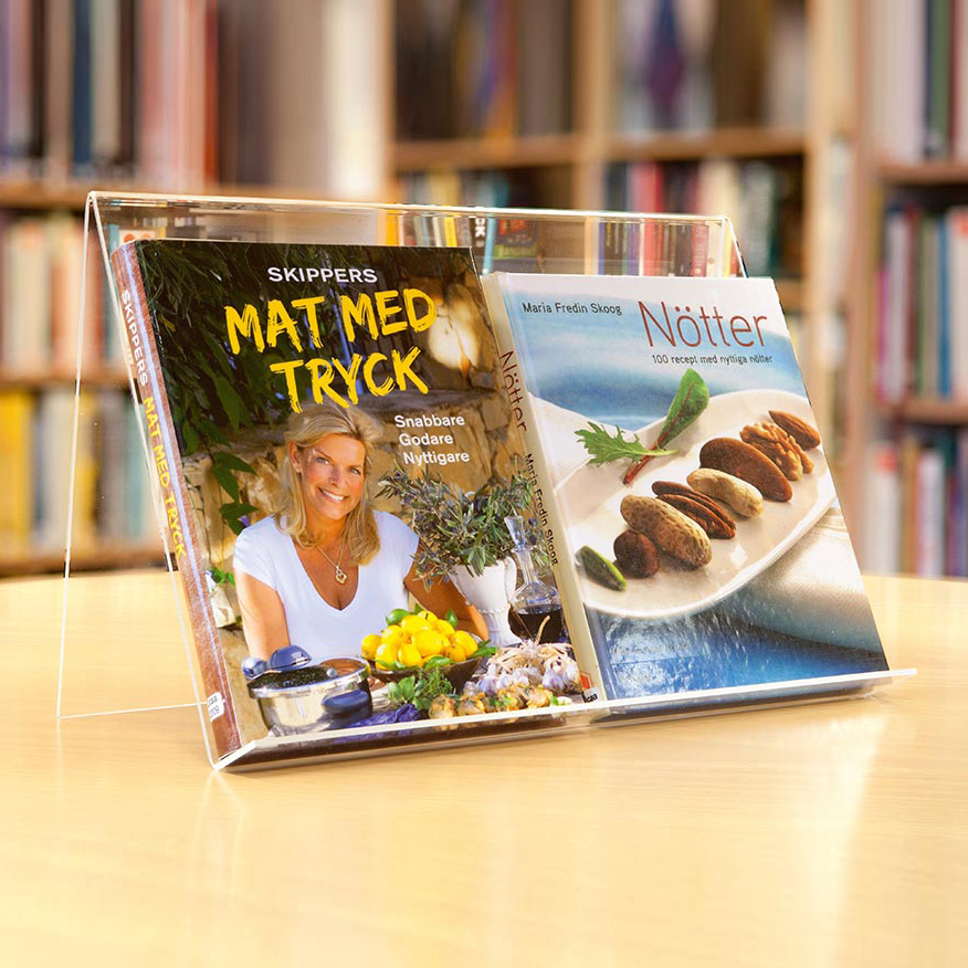 De boekenstandaards zijn stapelbaar en verkrijgbaar in meerdere afmetingen, hoogtes en dieptes.