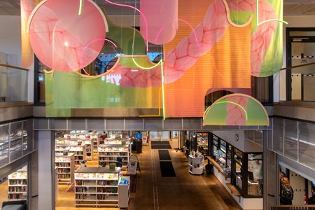 3-vaks prentenboekenbak met opslagruimte onderin.