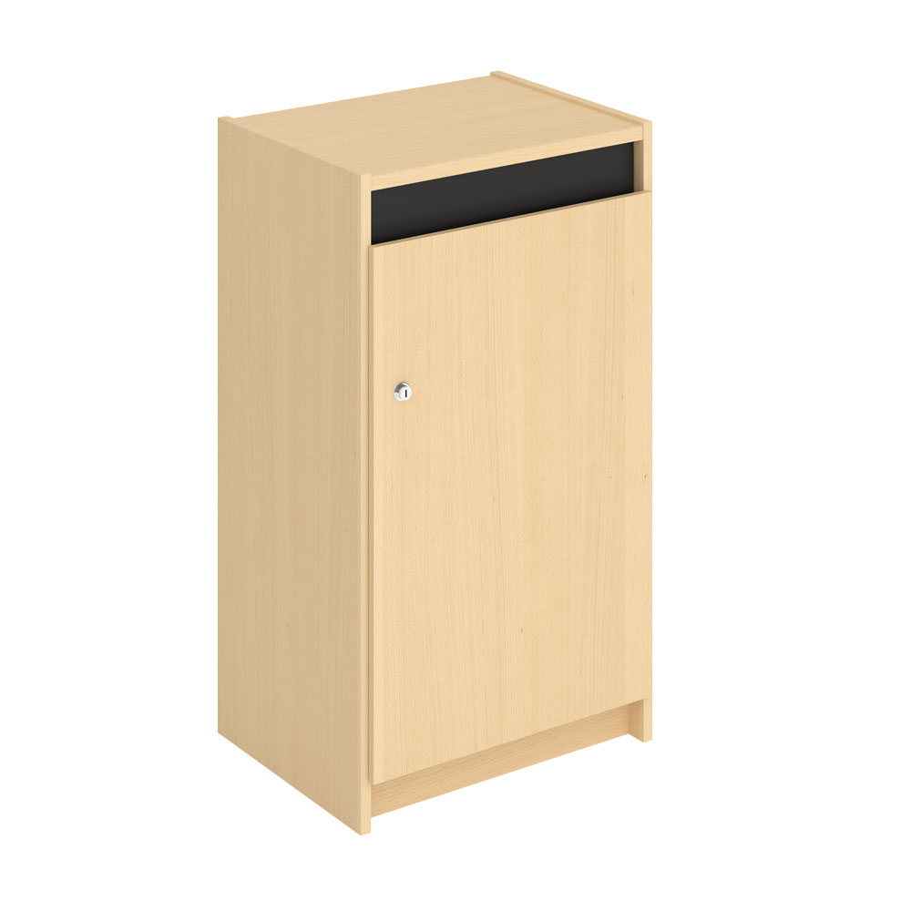 Functionele, vergrendelbare inleverbox. Dikke schuimplastic (40 mm) buffer op de bodem vangt de boeken op.