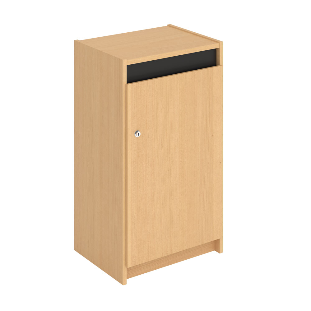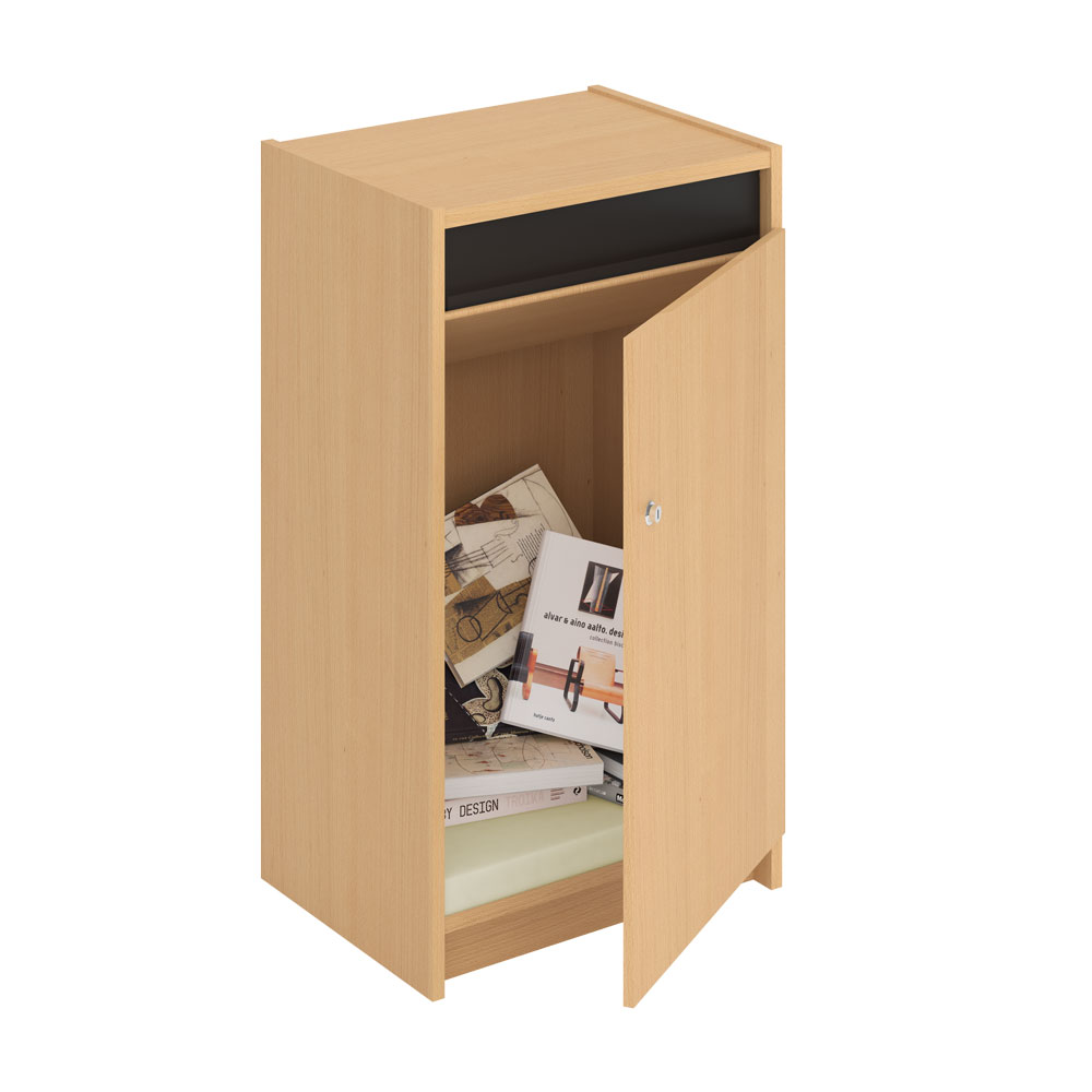 Functionele, vergrendelbare inleverbox. Dikke schuimplastic (40 mm) buffer op de bodem vangt de boeken op.