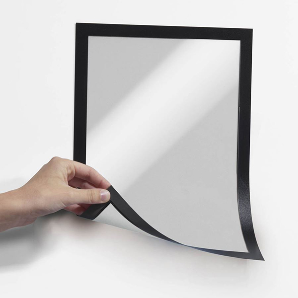 Deze magnetische lijsten (Duraframe® Magnetic) zijn ideaal voor plaatsing op eindpanelen van een metalen boekenrek, whiteboards.