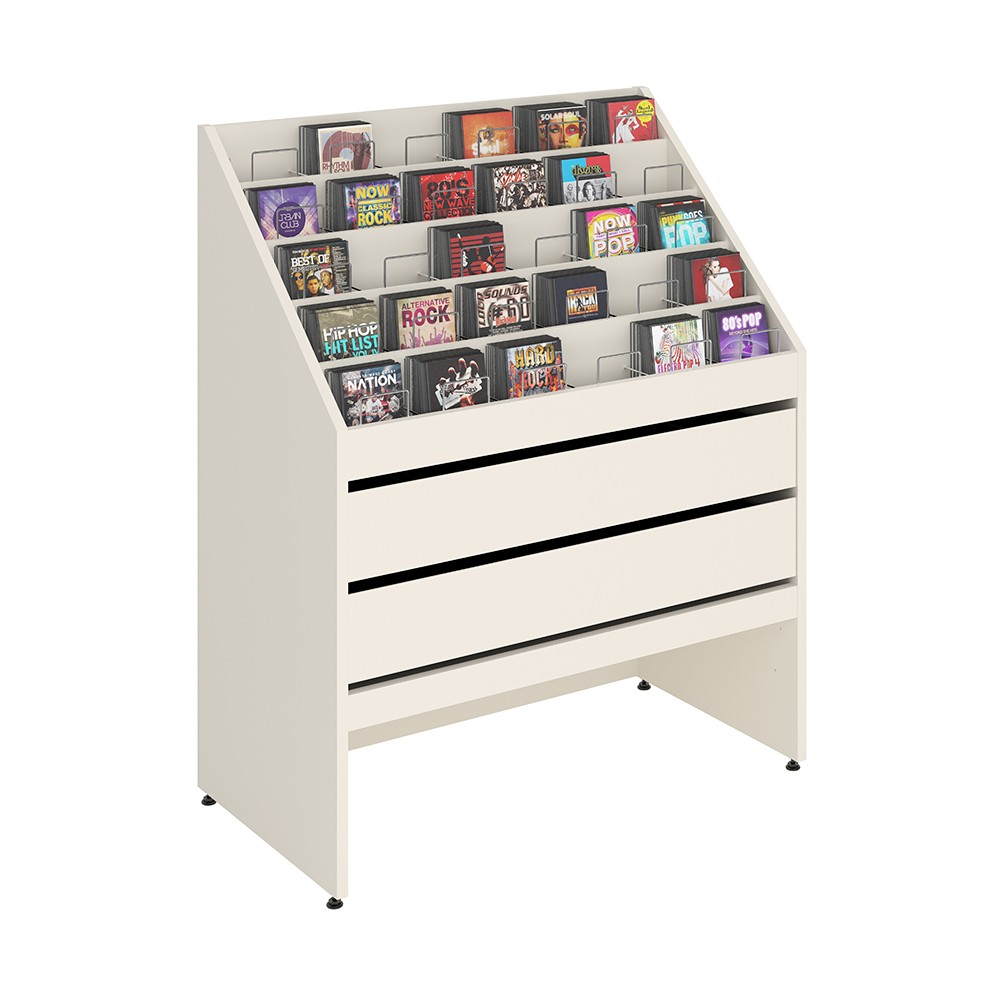 AVM-meubel voor presentatie en opslag van media zoals muziek, films, audioboeken, … op 5 niveaus. Op elk niveau zijn er 6 ruime overzichtelijke vakken.