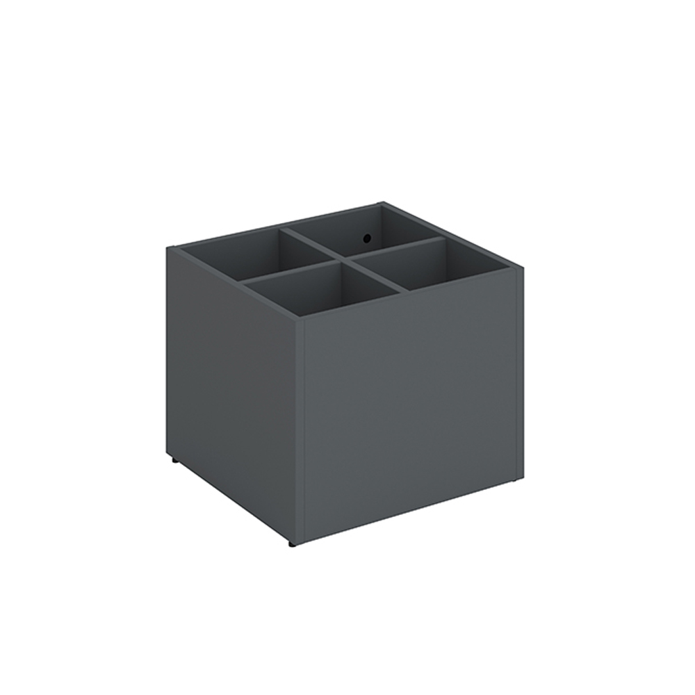 Het podium heeft een afneembare bovenplaat en handige onderverdelingen waarmee het bovenste gedeelte kan worden verdeeld in 2-4 compartimenten, afhankelijk van de mediagrootte.