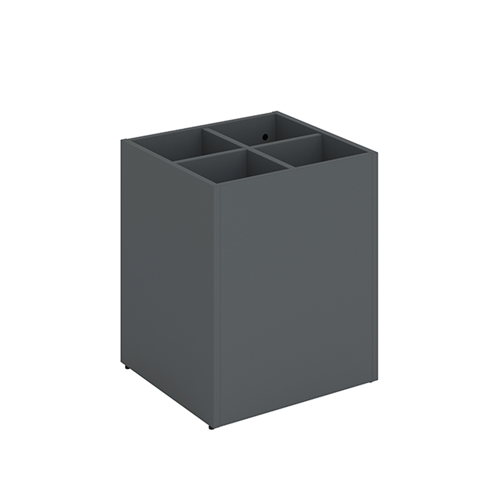 Het podium heeft een afneembare bovenplaat en handige onderverdelingen waarmee het bovenste gedeelte kan worden verdeeld in 2-4 compartimenten, afhankelijk van de mediagrootte.