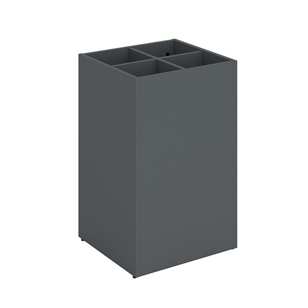 Het podium heeft een afneembare bovenplaat en handige onderverdelingen waarmee het bovenste gedeelte kan worden verdeeld in 2-4 compartimenten, afhankelijk van de mediagrootte.