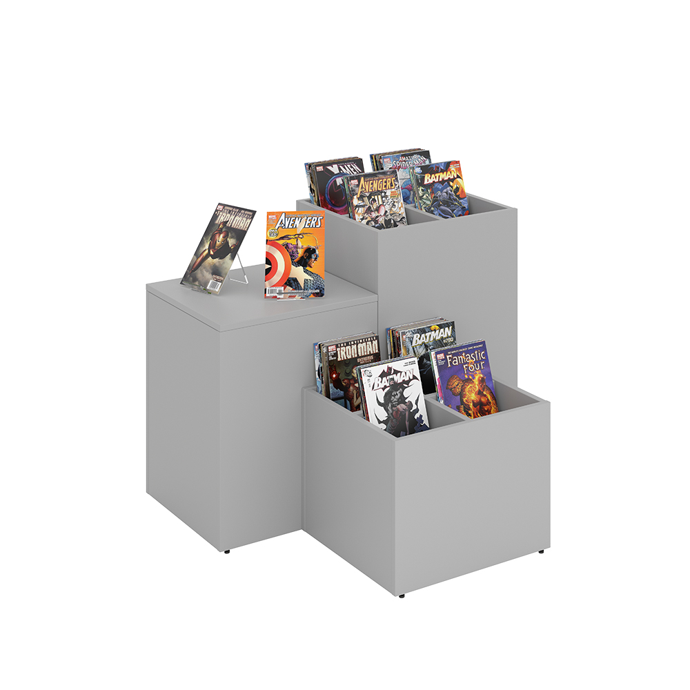 Maria is een serie podia en boekbakken verkrijgbaar in 2 formaten (50 cm, XL 64 cm), in 3 verschillende hoogtes (Mini, Midi, Maxi) voor flexibele oplossingen voor ieder interieurontwerp.