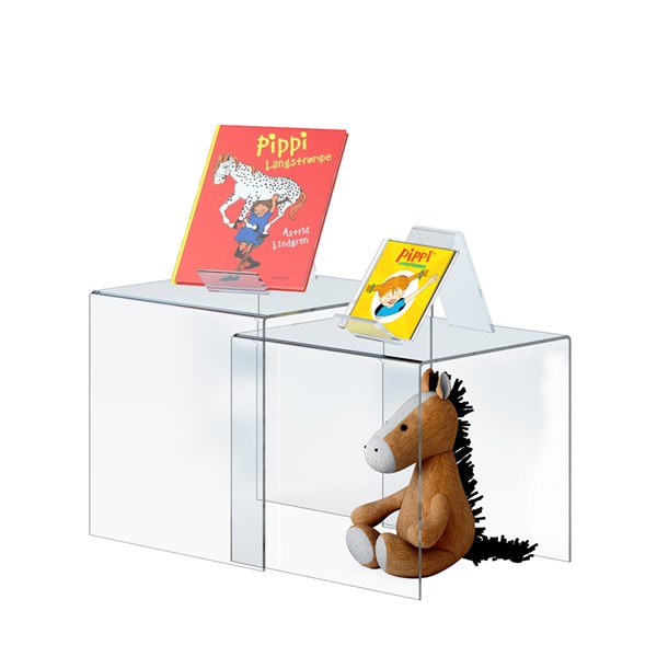 Handig verhoog in acrylaat in sets van 2 maten in verschillende varianten.