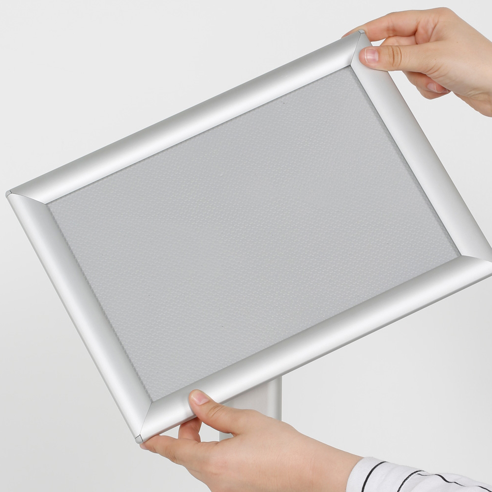 Clipframe met 25mm profiel. Een solide basis en een plastic anti-reflectie cover maken deze infostand bruikbaar in de hele bibliotheek of ontvangstruimte.